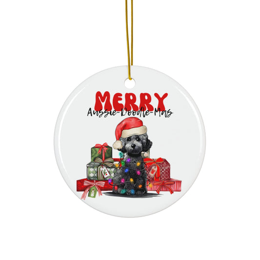 Aussiedoodle Christmas Ceramic Ornament, Round or Star Shape, Merry Aussiedoodlemas, Aussiedoo Ornament, Aussiedoodle Dog Ornament