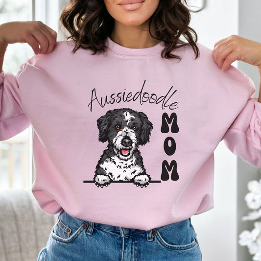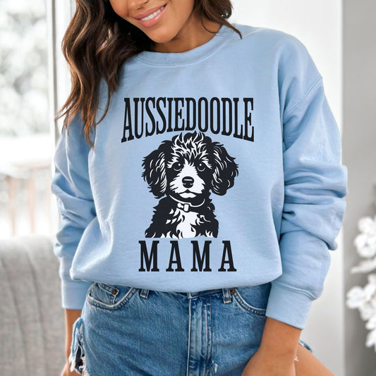 Aussiedoodle Mom Crewneck Sweatshirt Aussie Doodle Mama Gift Black and White Aussiedoo, Cute Aussiedoodle Puppy, Aussiedoodle Sweatshirt